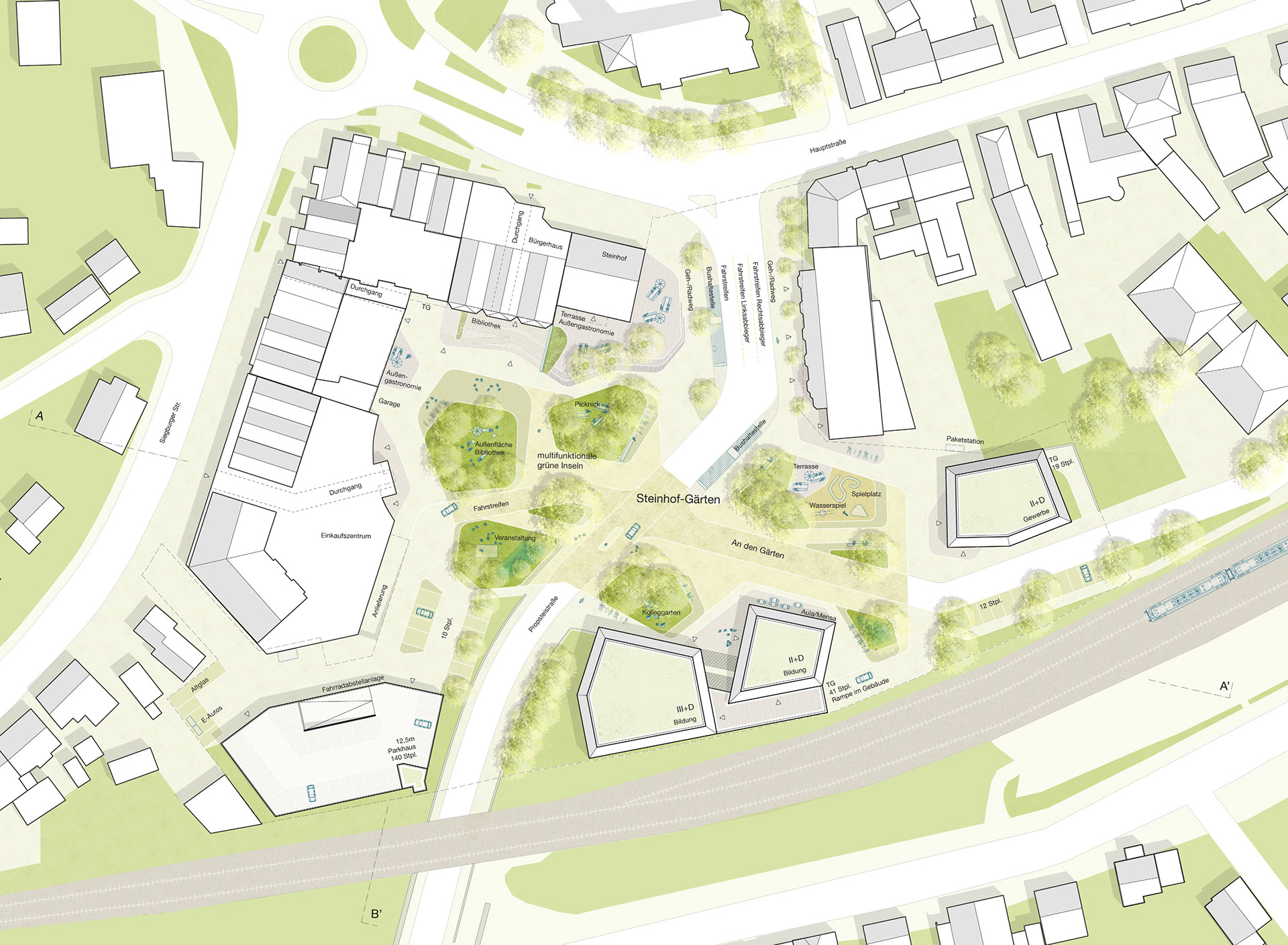 Die Stadt Overath plant die Neugestaltung eines ca. 1,3 ha großen Stadtraums im Bereich des historischen Stadtkerns, der den derzeit verkehrstechnisch geprägten Steinhofplatz, die gegenüberliegende ehemalige Feuerwehr sowie die angrenzenden Flächen umfasst. Zur Sicherstellung einer hohen städtebaulichen Qualität und zur Betonung der Bedeutung des Ortes wurde ein städtebaulicher Wettbewerb mit anschließendem VGV-Verfahren durchgeführt.